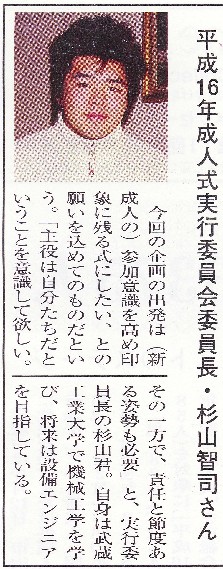 タウンニュース「シニアのさとしくん」成人式実行委員会委員長